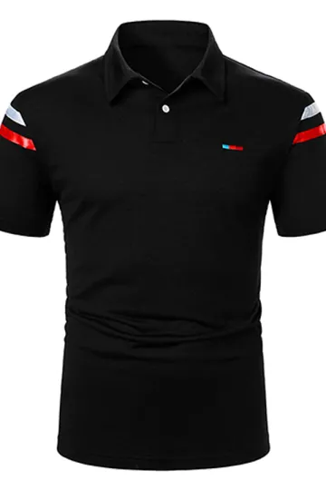 Men's Casual Stripe Print Lapel Polo Shirt