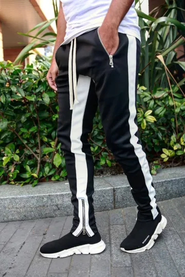 Wholesale Men's color-block casual double-pocket multi-zipper sportspants