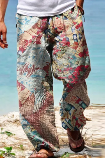 Wholesale Men's Ethnic Print Beach Relaxed Pants