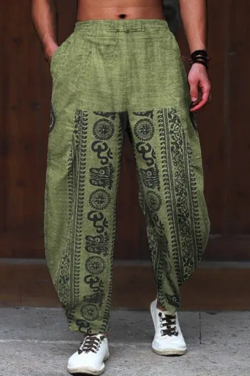 Wholesale Men's Ethnic Print Casual Linen Pants