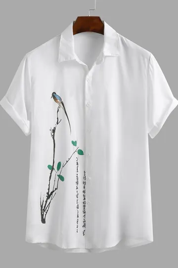 Men's ethnic style ink painting print short-sleeved shirt
