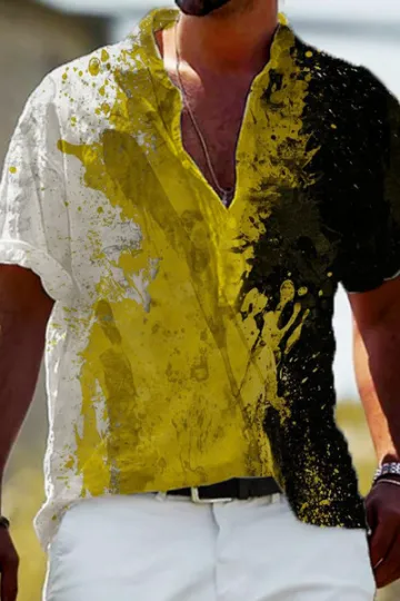 Wholesale Men's Fashion Abstract Print Linen Shirt