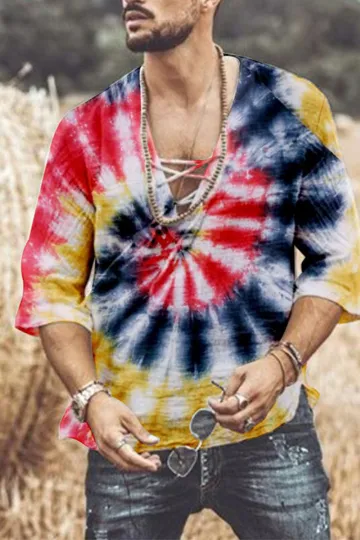 Men's Fashion Belted Tie-Dye Printed Shirt
