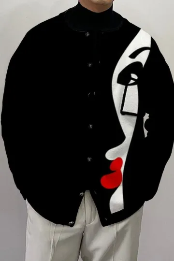 Men's Fashion Face Print Long Sleeve Cardigan