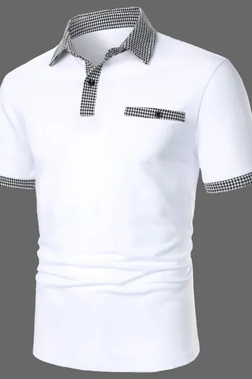 Men's Fashion Houndstooth Trim Polo Shirt