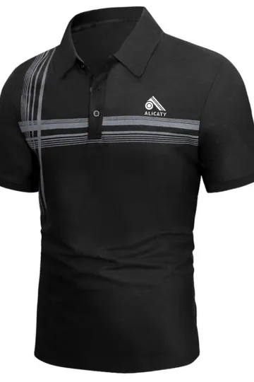 Wholesale Men's Fashion Striped Print Polo Shirt