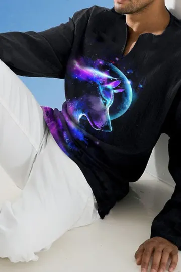 Wholesale Men's Fashion Wolf Print Casual Shirt