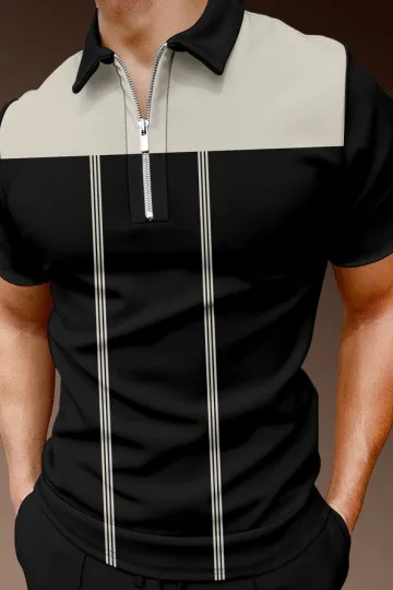 Wholesale Men's Fashion Zip Neck Polo Shirt