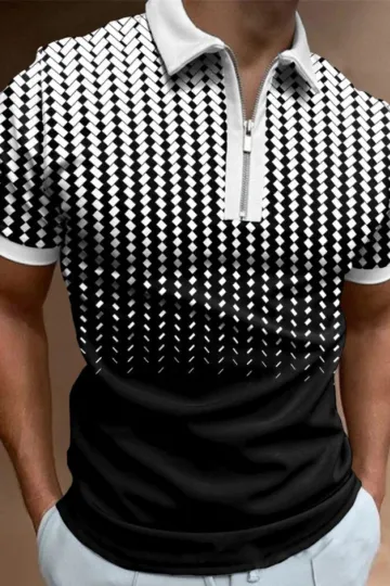 Men's Geometric Zip Polo Shirt Fashion