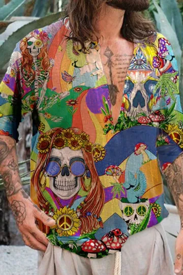 Wholesale Men's Hippie Skull Print Casual Shirt