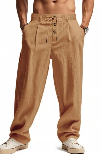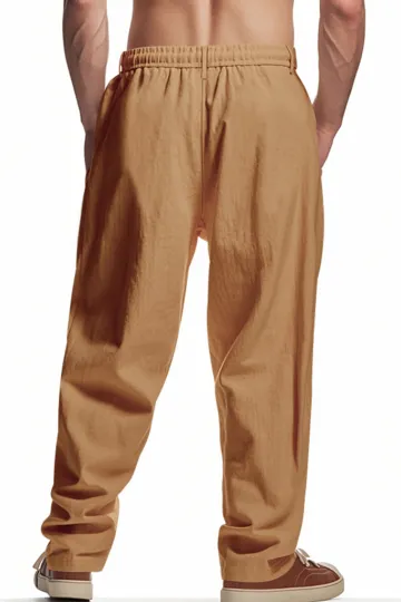 Wholesale Men's Khaki Breathable Linen Loose Casual Pants