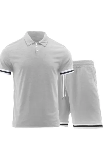 Wholesale Men's lapel short -sleeved shorts two -piece sports casual set
