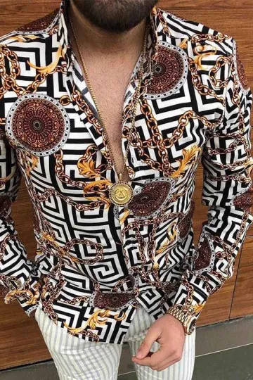 Men's Long Sleeve Shirt Casual Printed Top
