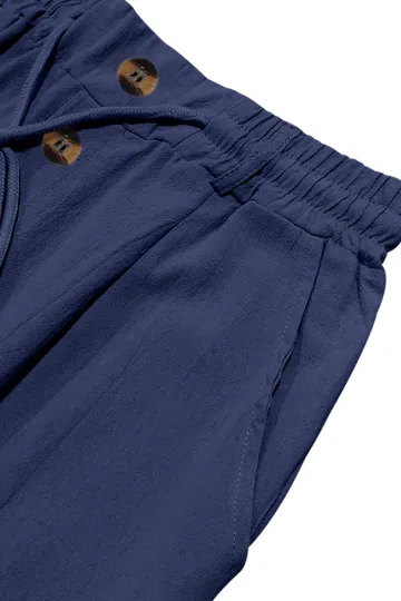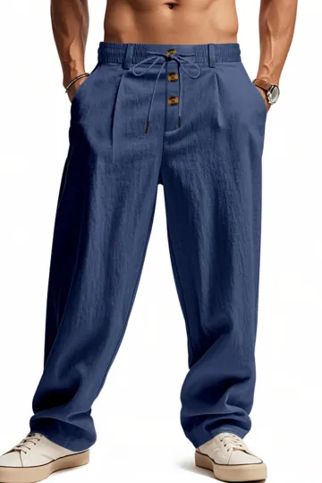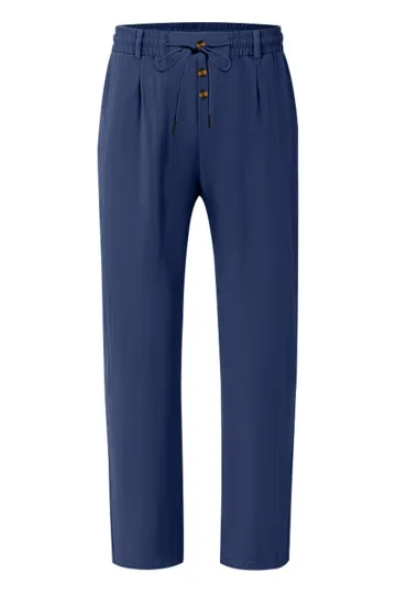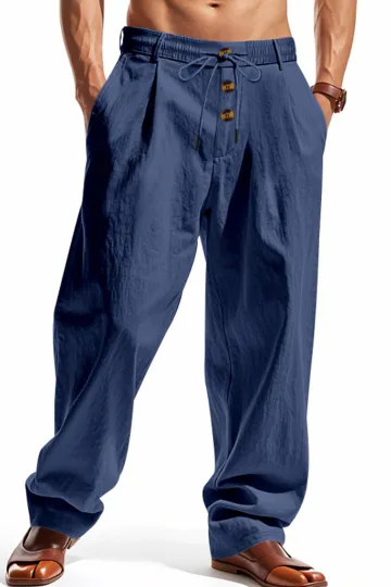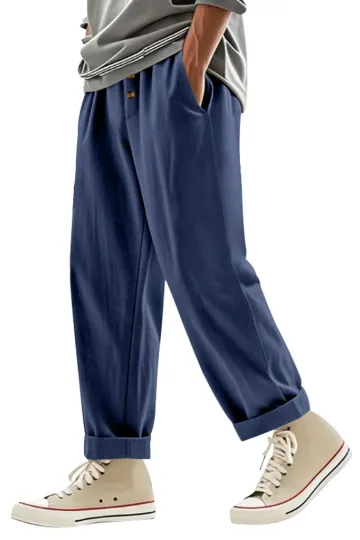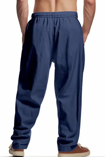 Wholesale Men's navy blue breathable linen loose casual trousers