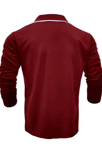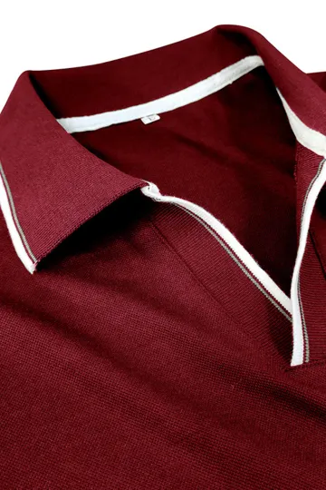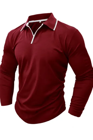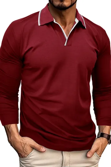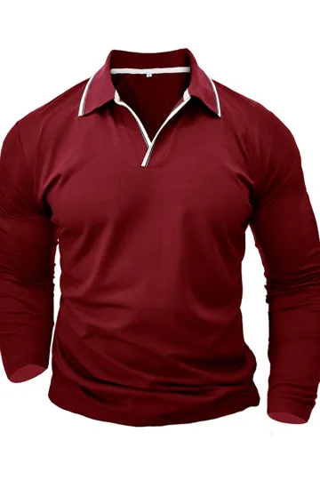 Wholesale Men's new long-sleeved V-neck lapel contrasting color POLO shirt