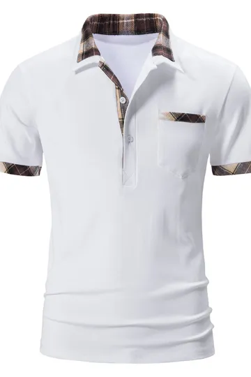 Men's Plaid Collar Short Sleeve Polo Shirt