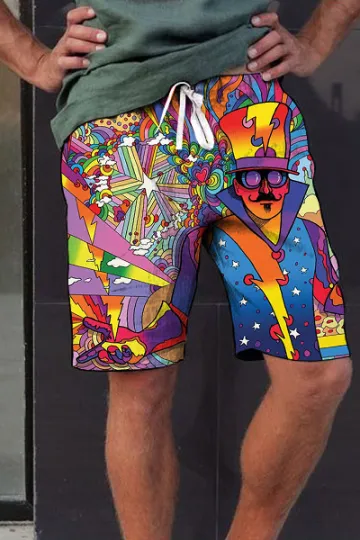Wholesale Men's Psychedelic Graphic Print Athletic Shorts