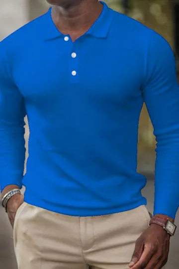 Wholesale Men's solid-color button-down long-sleeve polo shirt