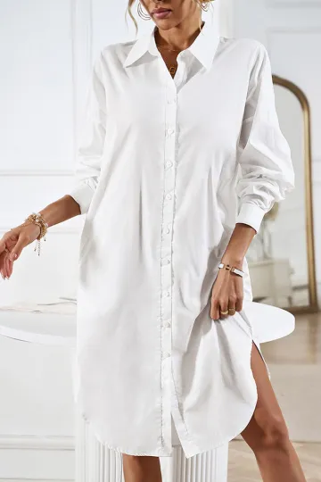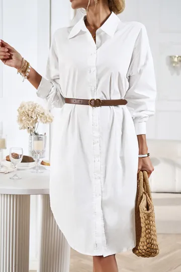 Wholesale Women's solid color casual all-match long-sleeved shirt dress