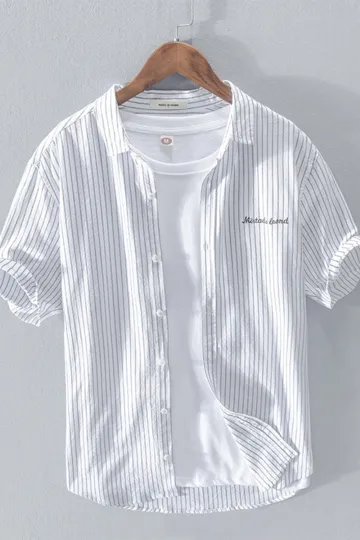 Men's Striped Embroidered Short Sleeve Shirt Summer Casual