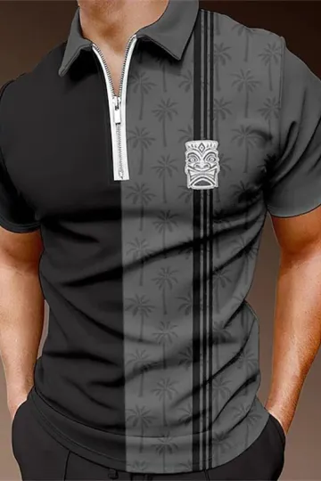 Men's Tribal Print Zip-Up Polo Shirt
