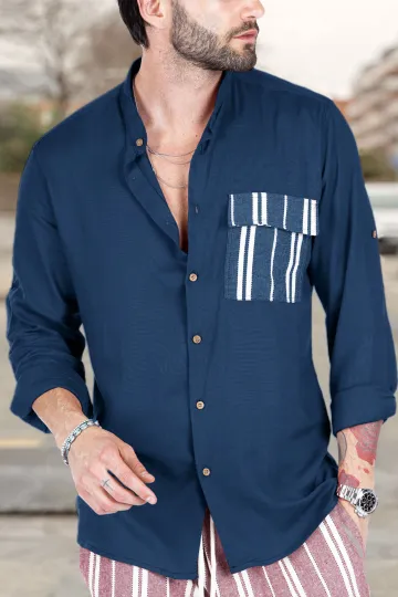 Wholesale Men's Vintage Stripe Pocket Long Sleeve Shirt