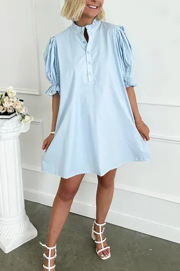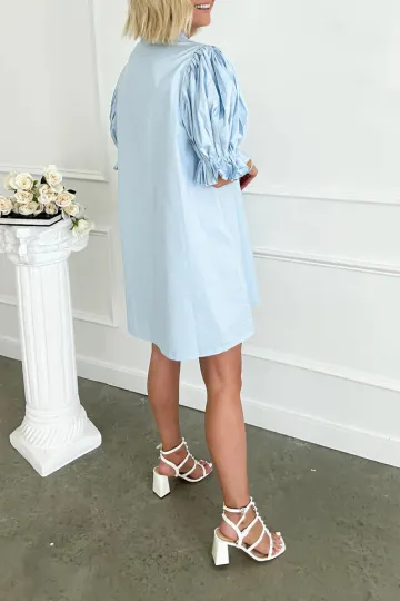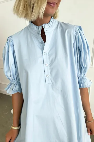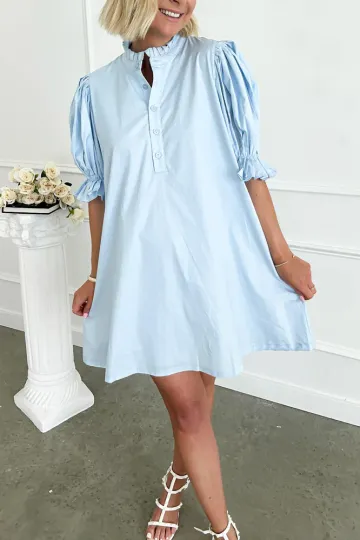 Wholesale MORNING MIST BABY BLUE PUFF SLEEVE DRESS