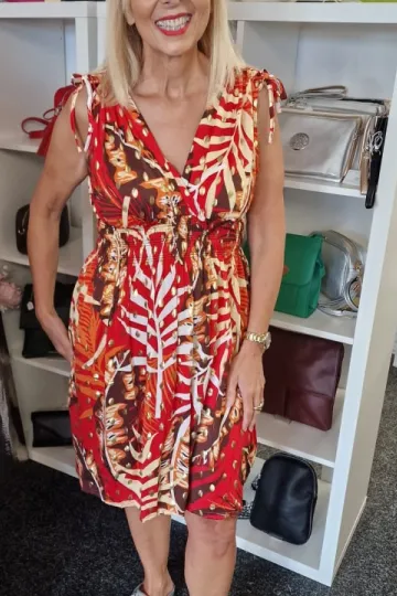 Multicolour V-Neck Drawstring Dress
