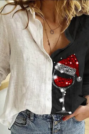 New Christmas New Printed Lapel Long Sleeve Loose Shirt
