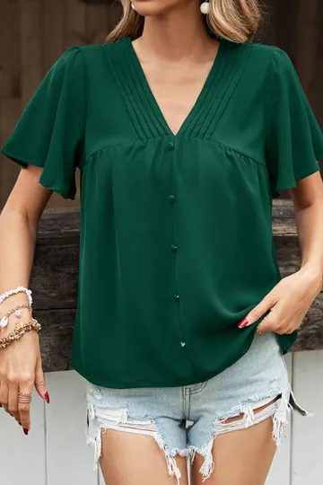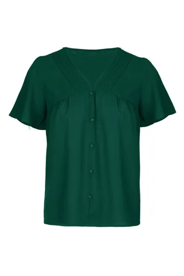 New Fashion Ladies Solid Color Pleated Shirt