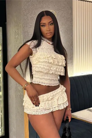 Wholesale New fashion sweet hot girl solid color hollow slim pleated shorts suit