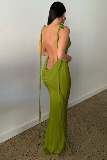 New fashionable and sexy backless strappy long skirt tube top halter neck dress