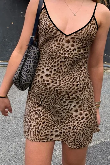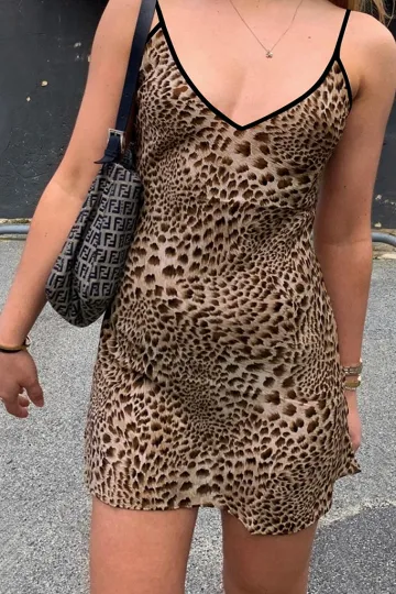 New V-neck sexy suspender skirt hot girl leopard print suspender dress
