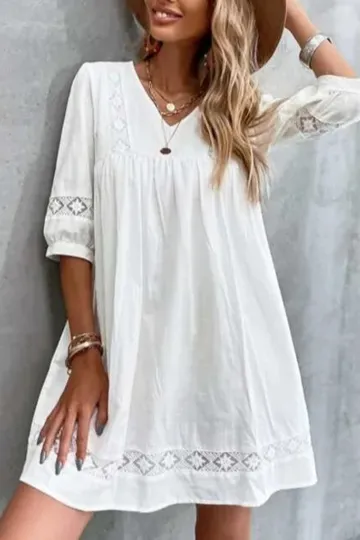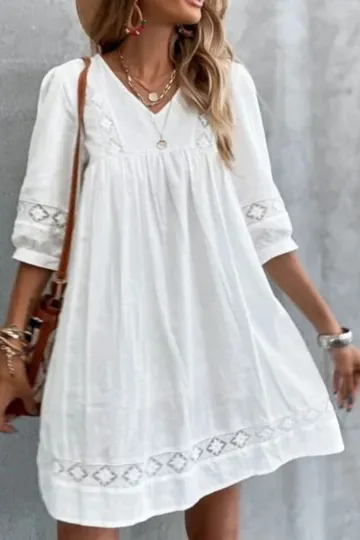 New V-neck simple cotton mid-sleeve casual vacation dress