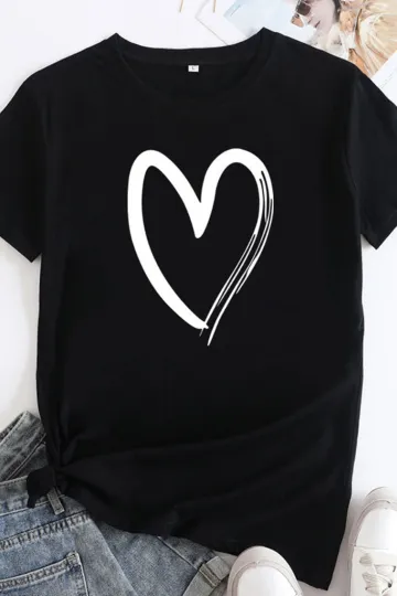 Wholesale New women's casual cotton love pattern short-sleeved T-shirt