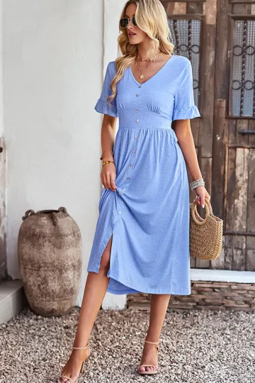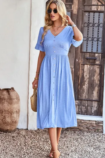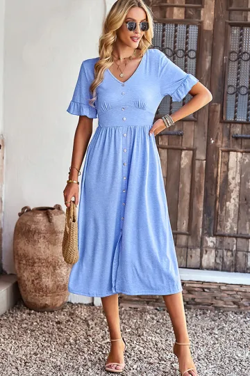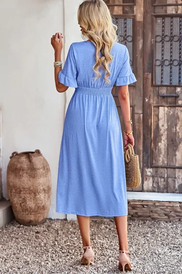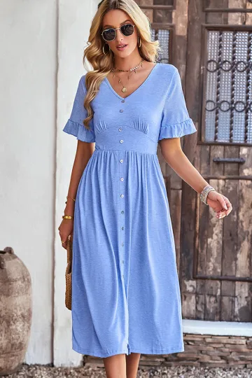 New women's elegant commuter V-neck short-sleeved ruffle skirt