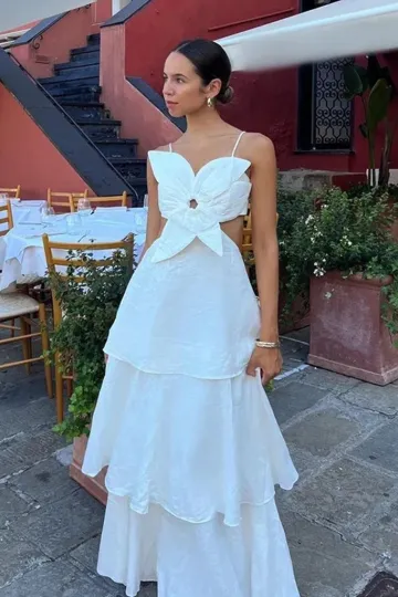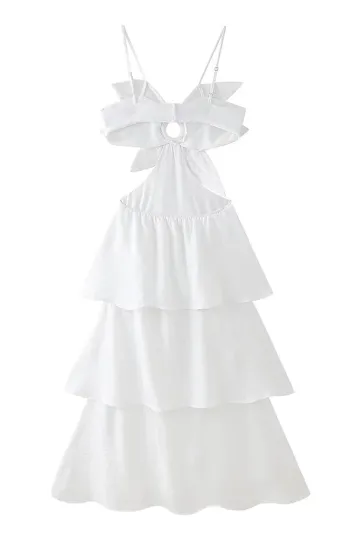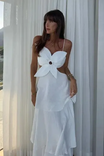 New women's floral hollow pleated sleeveless high waist dress