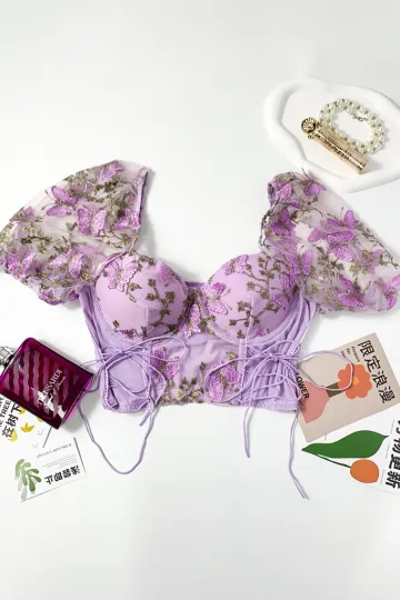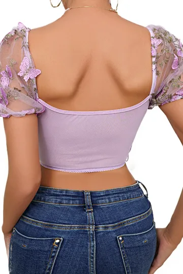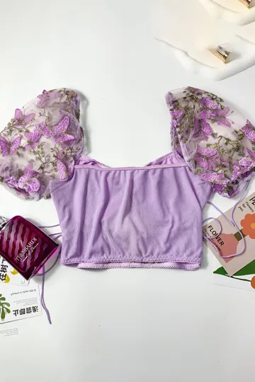 Wholesale New women's puff sleeve sexy floral navel cropped top
