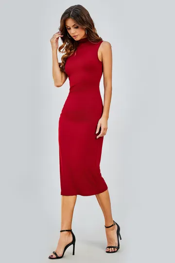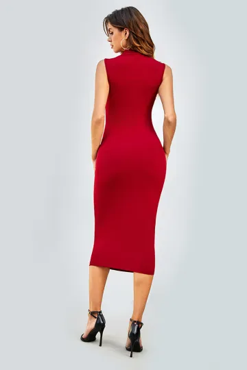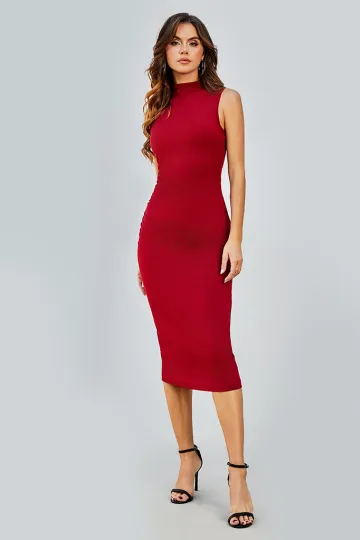 New women's simple round neck sleeveless hip-hugging tight dress