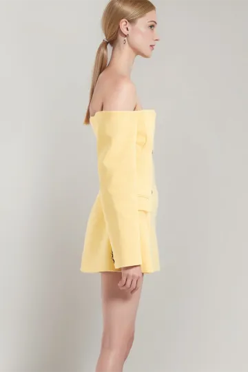 Off-shoulder one-shoulder collar goose yellow suit jacket single-breasted mid-length dress