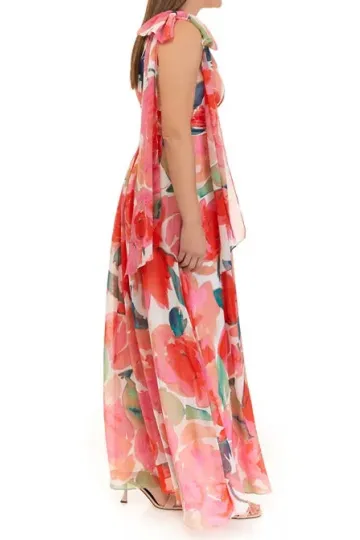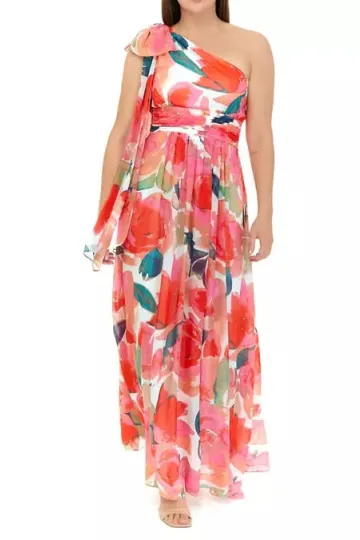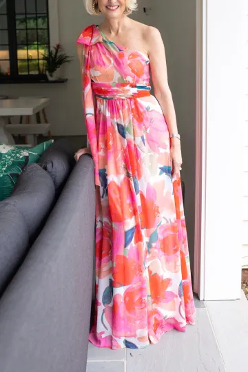 Wholesale One Shoulder Chiffon Floral Print Long Dress