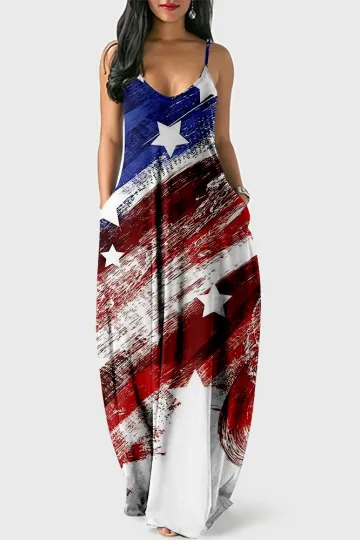 Patriotic Star Print Maxi Slip Dress