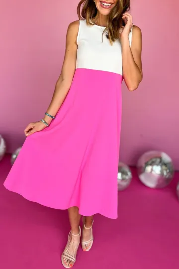 Wholesale Pink Colorblock Sleeveless A Line Midi Dress