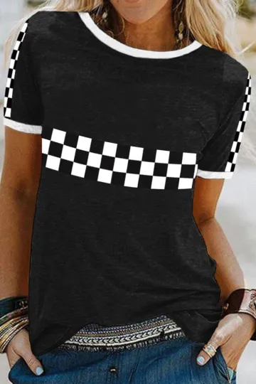 Wholesale Plaid sleeve round neck short ska Vintage Women's T-shirt