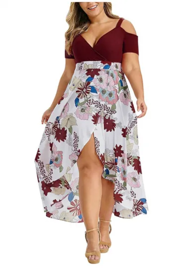 Plus Size Bohemian Floral Off-Shoulder Dress
