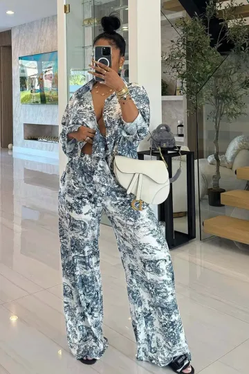 Wholesale Printed Animal Shirt and Casual Pants Set