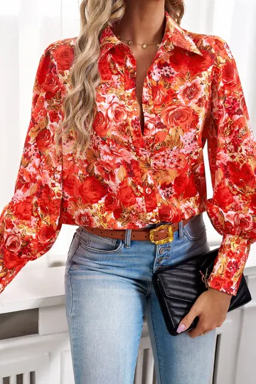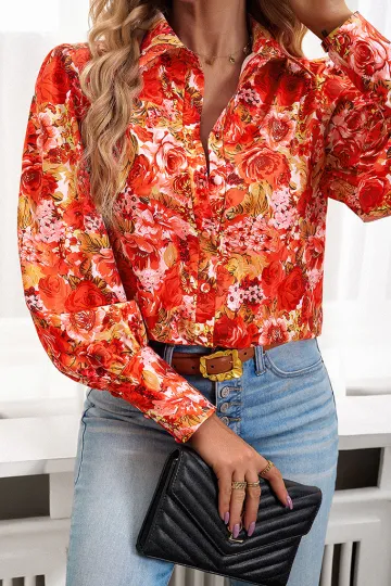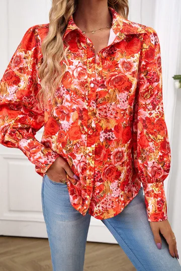 Wholesale Ladies Printed Casual Vacation Loose Shirt Top