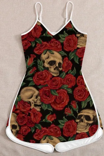 Wholesale Punk Floral Skull Sexy Summer Rompers