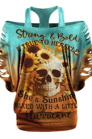 Wholesale Punk Off Shoulder Ripped Skull Print Short Sleeve T-Shirt