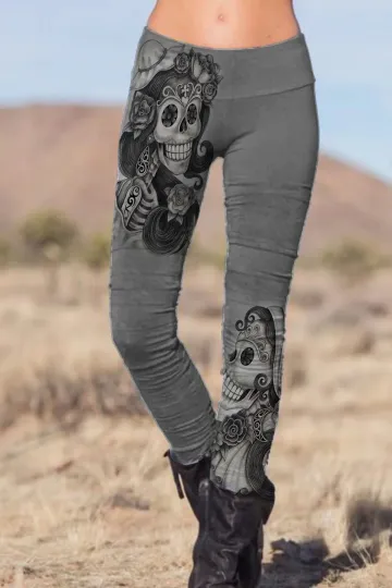 Wholesale Skull girl punk print casual stretch pants